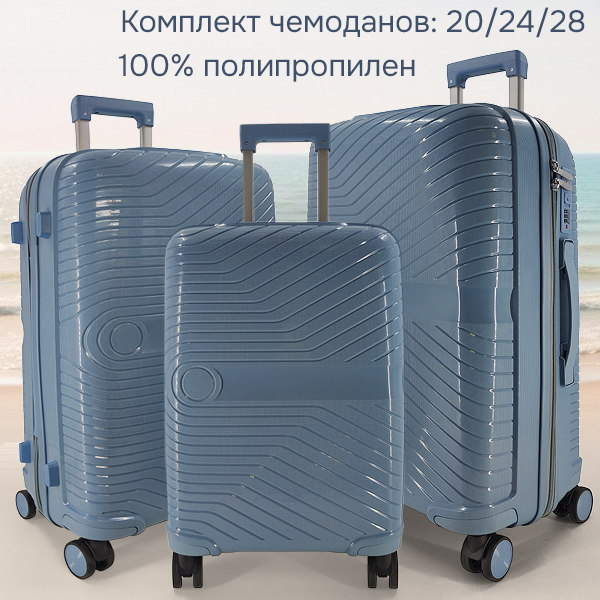 Комплект из 3-х чемоданов (полипропилен). 6989 l.blue
