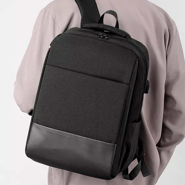 Два боковых кармана. На спинке имеется крепление на выдвижную ручку чемодана.