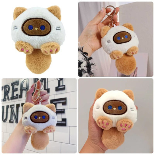 Пушистый брелок "Котик" бежевый