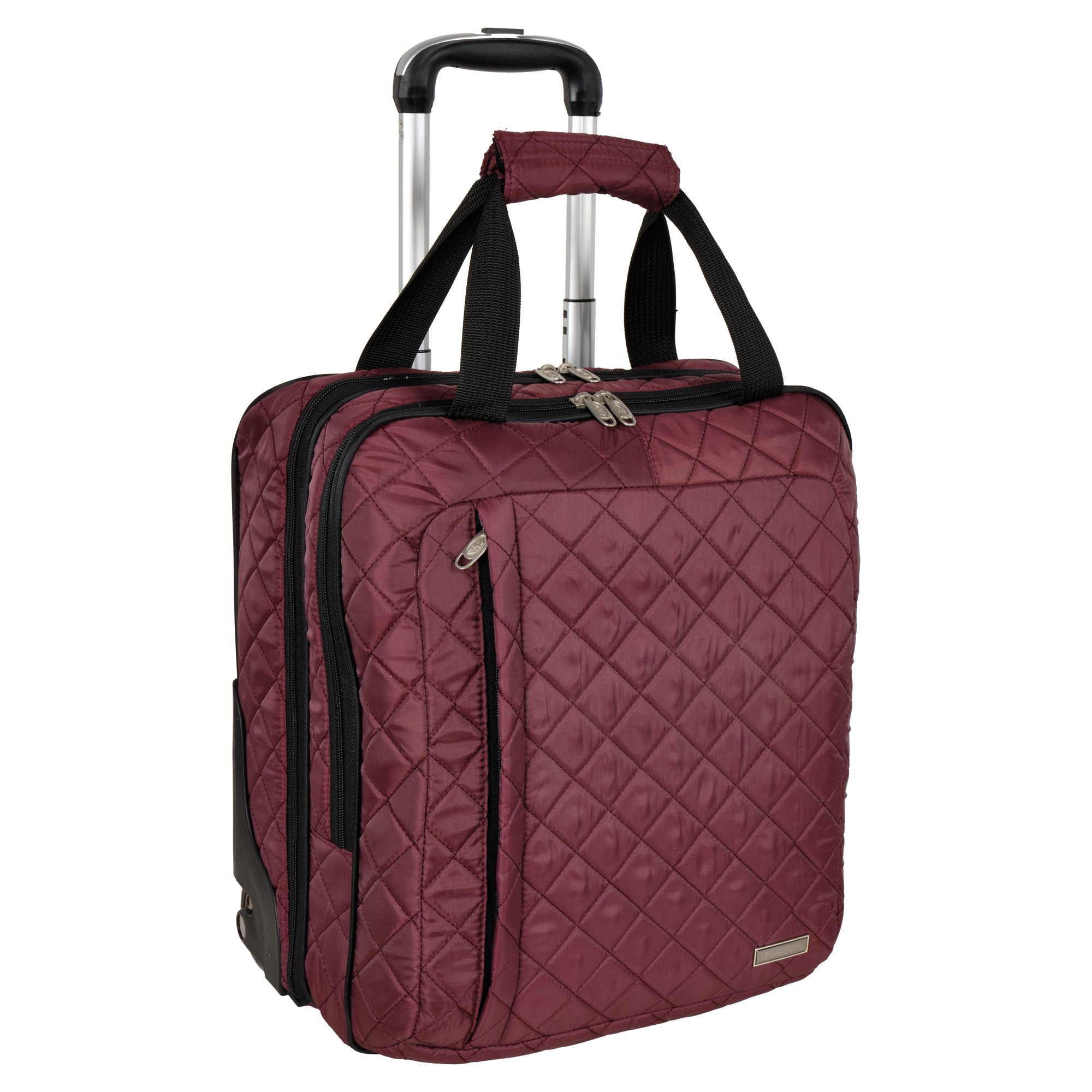 Колеса прорезиненные диаметр 8 см, дно дополнительно защищено от истирания. Сумка устойчиво стоит на ножках. Модель подходит под требования для ручной клади в большинство авиакомпаний.