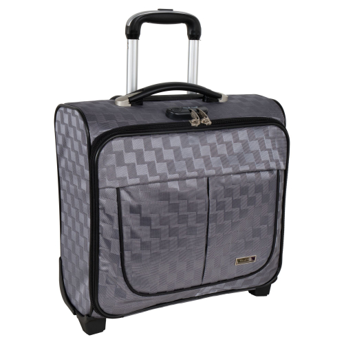 Чемодан от компании "Polar" на двух колёсах выполнен из прочного материала (нейлона и полиэстера). Подходит как ручная кладь. Чемодан закрывается на молнию, присутствует  также встроенный кодовый замок.Внутри есть одно большое отделение , в котором присутствуют ремни для фиксации вещей, отделение для ноутбука и маленький карман на молнии для документов. Снаружи расположен объёмный карман на молнии для мелких вещей. У чемодана есть небольшая ручка для переноски и металлическая ручка, которая выдвигается на 67 см..