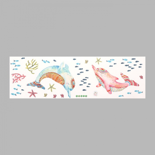 Наклейка интерьерная цветная «Красочные морские дельфины», пластик, 30×90 см