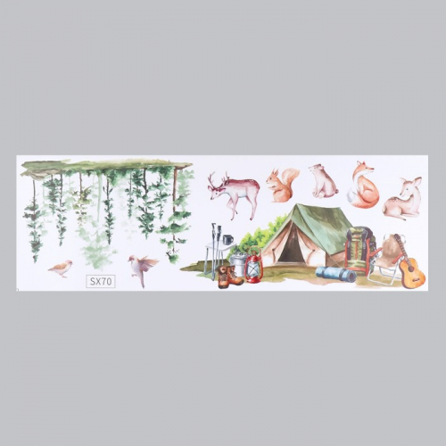 Наклейка интерьерная цветная «Лес со зверятами», пластик, 36×58 см