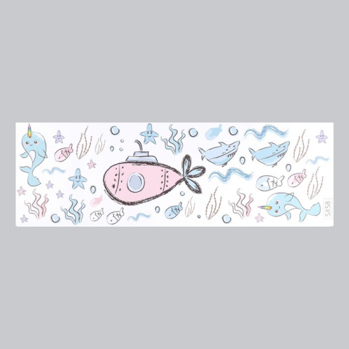 Наклейка интерьерная цветная «Подводная лодка и морские жители», пластик, 30×90 см