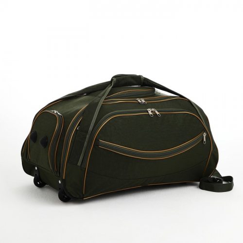 Сумка дорожная на колёсах 26", отдел на молнии, отдел для обуви, 3 наружных кармана, длинный ремень, цвет хаки