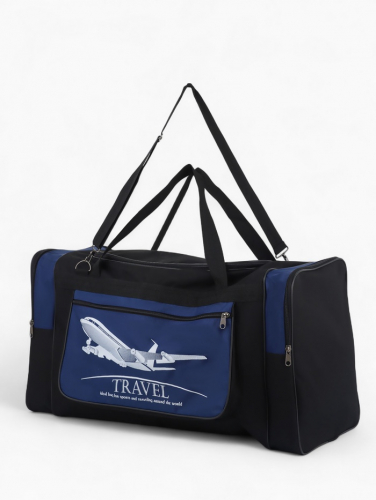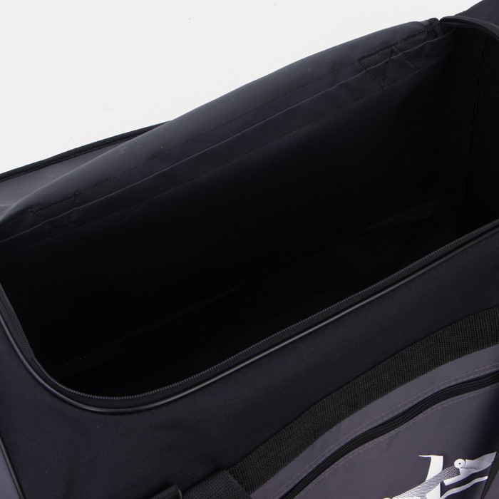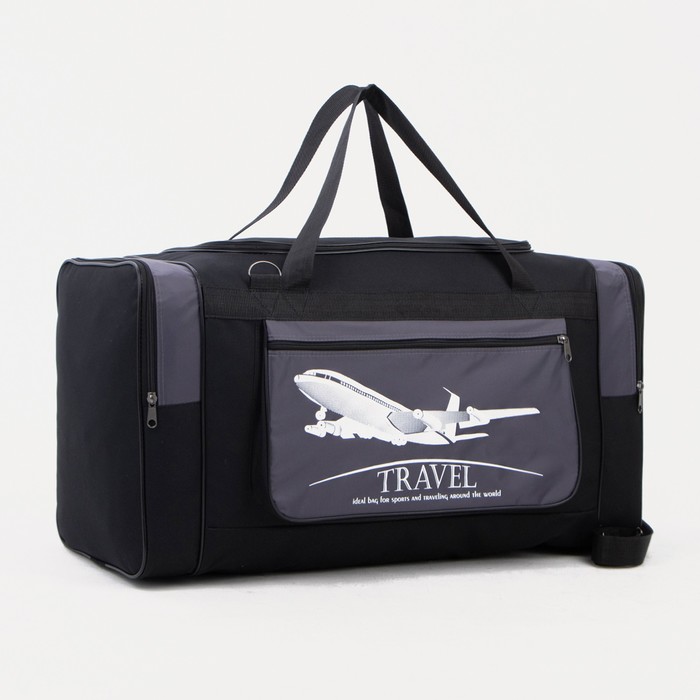 Сумка дорожная на молнии, 3 наружных кармана, длинный ремень, чёрная, серая