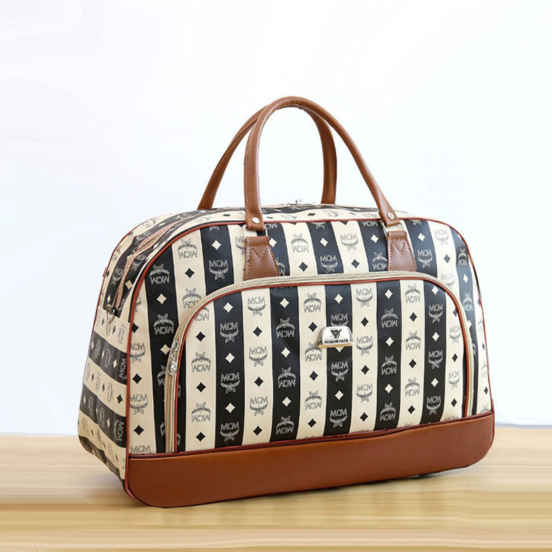 Стильная дорожная сумка из прочной экокожи с ярким декоративным принтом.