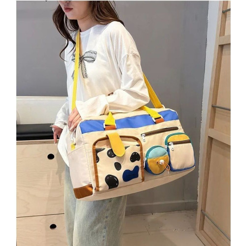 Яркая, многофункциональная и удобная удобная женская дорожная сумка для спорта, фитнеса, пикников, поездок, покупок, переноски и хранения различных вещей. Прочная и износостойкая сумка с очаровательным дизайном в нежных жёлто-кремовых тонах!