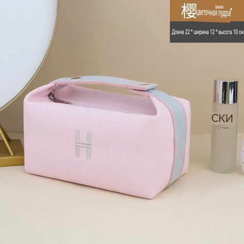 Внутри: одно основное вместительное отделение с карманами для различных небольших предметов личной необходимости. Косметичка закрывается на молнию. Ручка косметички расстёгивается при помощи крепкой кнопки магнита. Ровное устойчивое дно позволяет устойчиво расположить сумку-органайзер на поверхности.