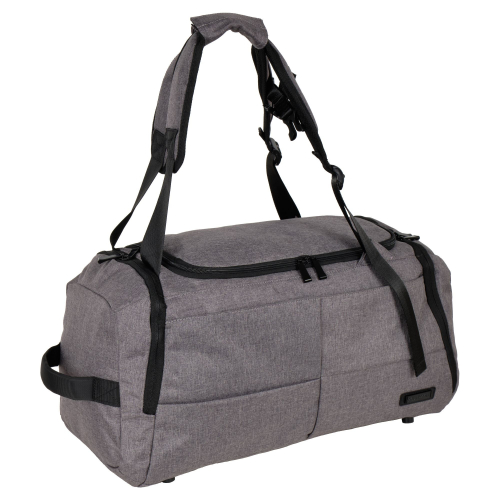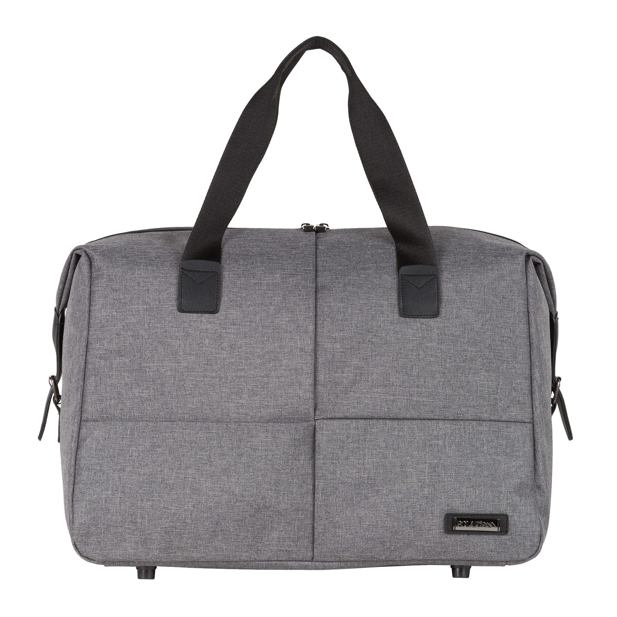 Вместительная дорожная сумка POLAR выполнена из полиэстера. Основное отделение закрывается на пластиковую молнию, внутри основного отделения на передней стенке есть отделение на липучке для ноутбука диагональю 15,6 , а на задней стенке сетчатый карман на молнии. Сзади сумки расположен ещё один карман на молнии. У данной модели есть две ручки для переноски, высота которых составляет 23 см.