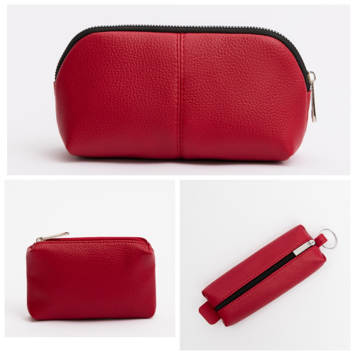 В набор входит- косметичка большая, косметичка малая и ключница.