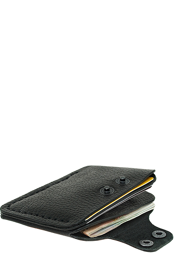 Портмоне-кардхолдер ручной работы. Прошит вощеной нитью. Застегивается на две кнопки,имеет три отделения для банковских карт и денежных купюр. Без подкладки.