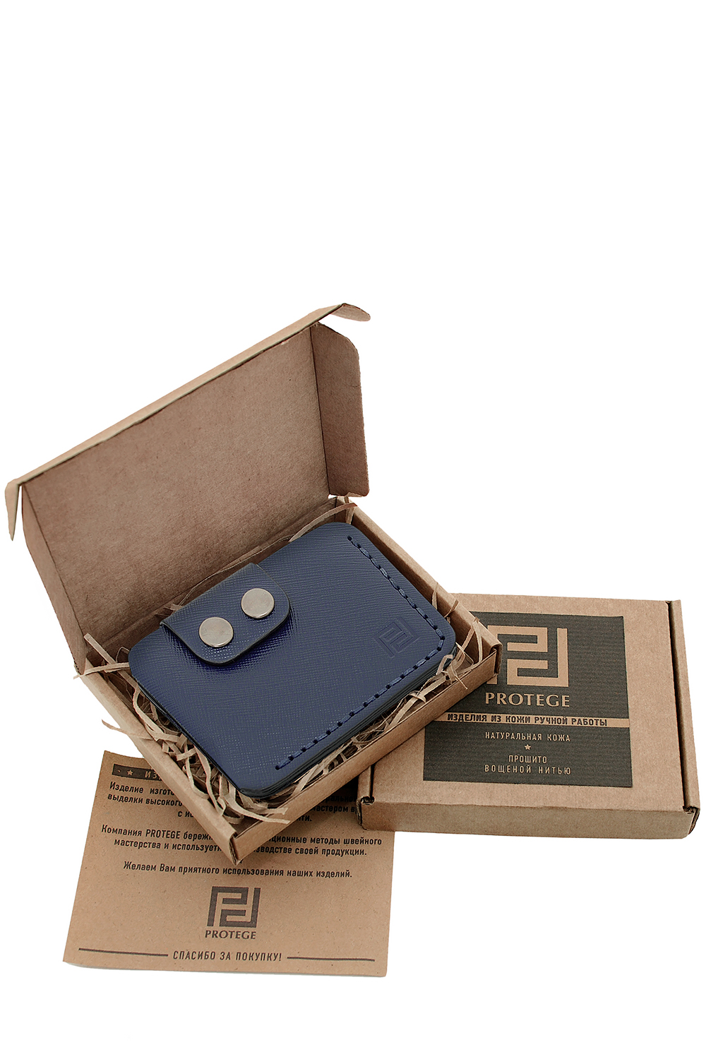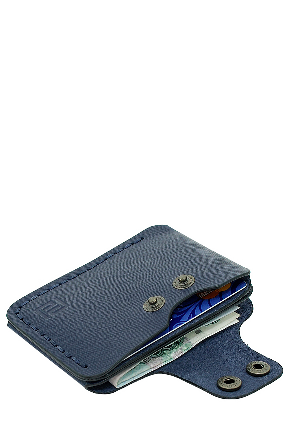 Портмоне-кардхолдер ручной работы. Прошит вощеной нитью. Застегивается на две кнопки, имеет три отделения для банковских карт и денежных купюр. Без подкладки.