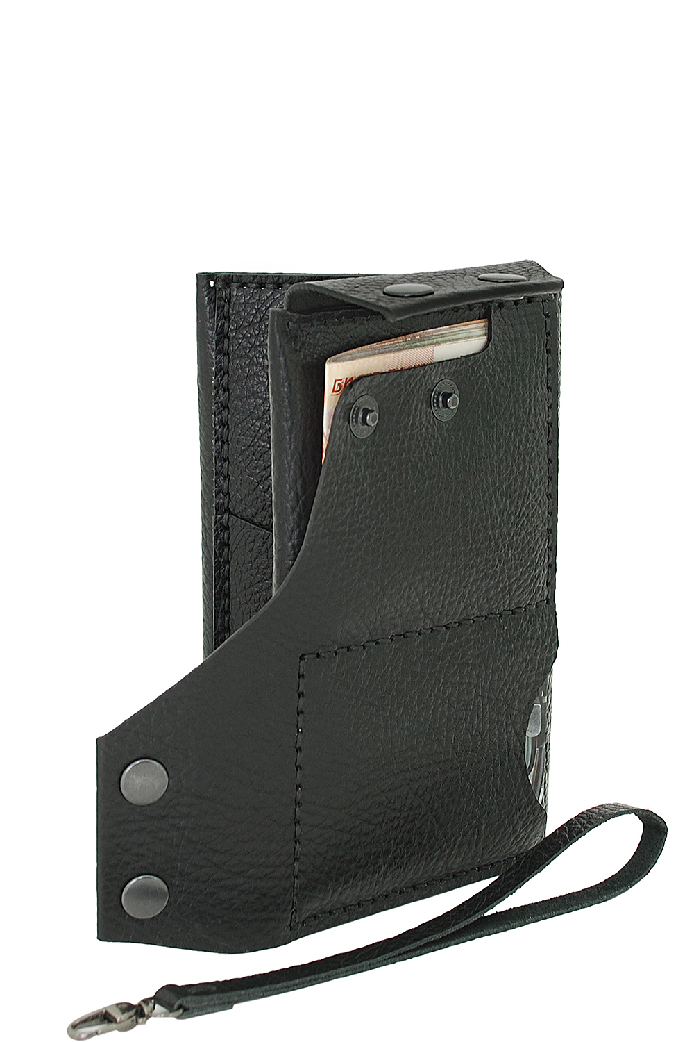 Многофункциональное портмоне-клатч ручной работы. Прошито вощеной нитью. Портмоне застегивается на небольшой клапан с двумя кнопками. Снаружи на задней стенке портмоне расположены отделения для быстрого использования (оплаты) денежных средств. А именно, небольшое отделение с застежкой на две кнопки для сложенных купюр и отделение для банковских карт. Внутри портмоне имеет 4 больших отделения: для паспорта,автомобильных документов,например свидетельства ПТС,а также денежных купюр. Здесь же расположены отделения для банковских карт. Может использоваться как классическое портмоне,а также для хранения документов автомобилистами и путешественниками.