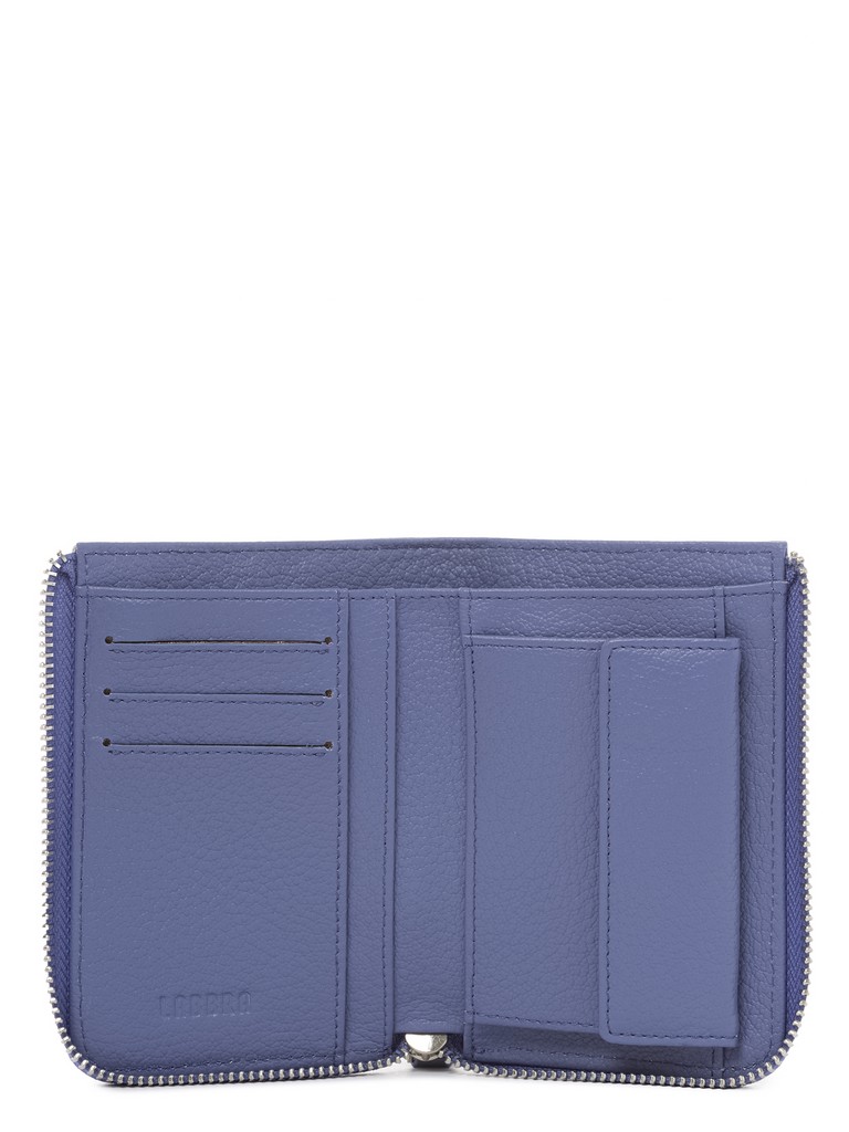 Женский кошелёк торговой марки LABBRA из натуральной кожи. Кошелек закрывается на металлическую молнию и содержит внутри открытое отделение для купюр, дополнительное отделение на молнии. Шесть отделений для пластиковых карт и одно отделение для монет, которое закрывается с помощью клапана на кнопке.