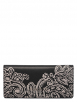 Женский кошелёк торговой марки ELEGANZZA из натуральной кожи. Модель закрывается клапаном с кнопкой. Отделение для мелочи находится внутри, имеет 2 отделения и закрывается на молнию. В кошельке есть 2 не складывающихся отделения для крупных купюр и 16 отделений для кредитных и дисконтных карт.