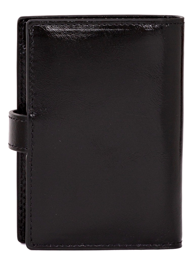 Визитница торговой марки Eleganzza из натуральной кожи. Модель вмещает 21 визитку. Закрывается на узкий клапан с кнопкой. Цвет фурнитуры никель.