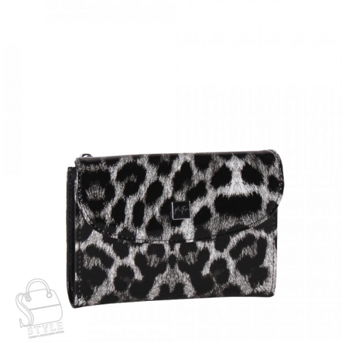 Кошелек женский из натуральной лаковой кожи. Модель раскладывается пополам, внутри открытый отдел под купюры и отдел на молнии, пять карманов для визиток и пластиковых карт. Снаружи клапан на  кнопке и карман на фермуаре. Фурнитура блестящее золото.
