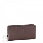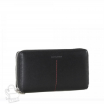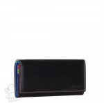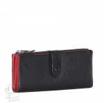 Полноразмерный кошелей с клапаном, выполнен из натальной кожи. Внутри два отдела для купюр, девять отделом для карт. Суражи карман на фермуаре. Фурнитура блестящее золото.