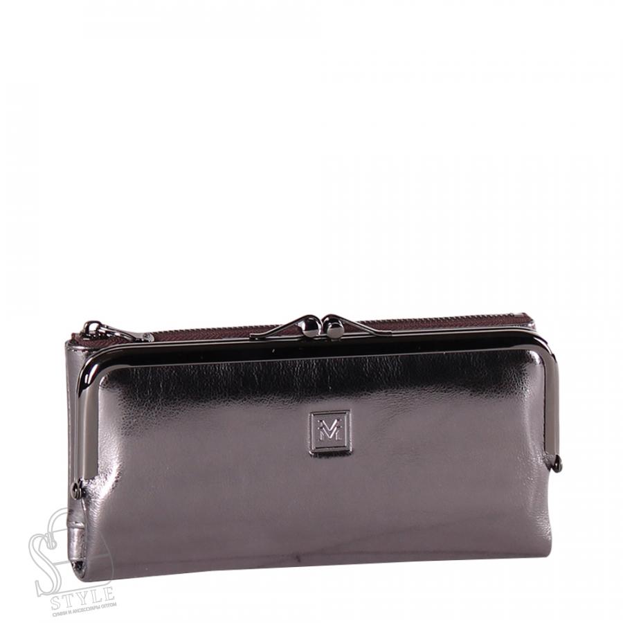 Снаружи карман закрывается на фермуар. Кошелек складывается пополам.