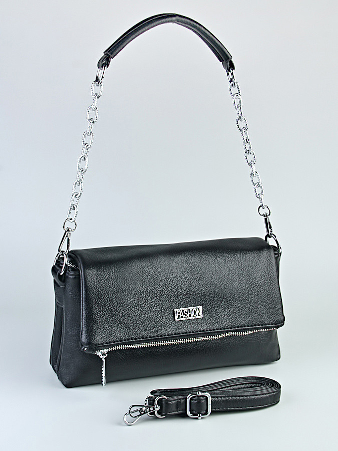 Сумка имеет 2 основных отделения, внутри которых 1 открытый карман и 1 карман на молнии. Крышка клапан закрывается на магнитные кнопки, внутри нее также есть карман на молнии. Снаружи с тыльной стороны 1 карман на молнии. Дополнительно прилагается регулируемый ремешок.