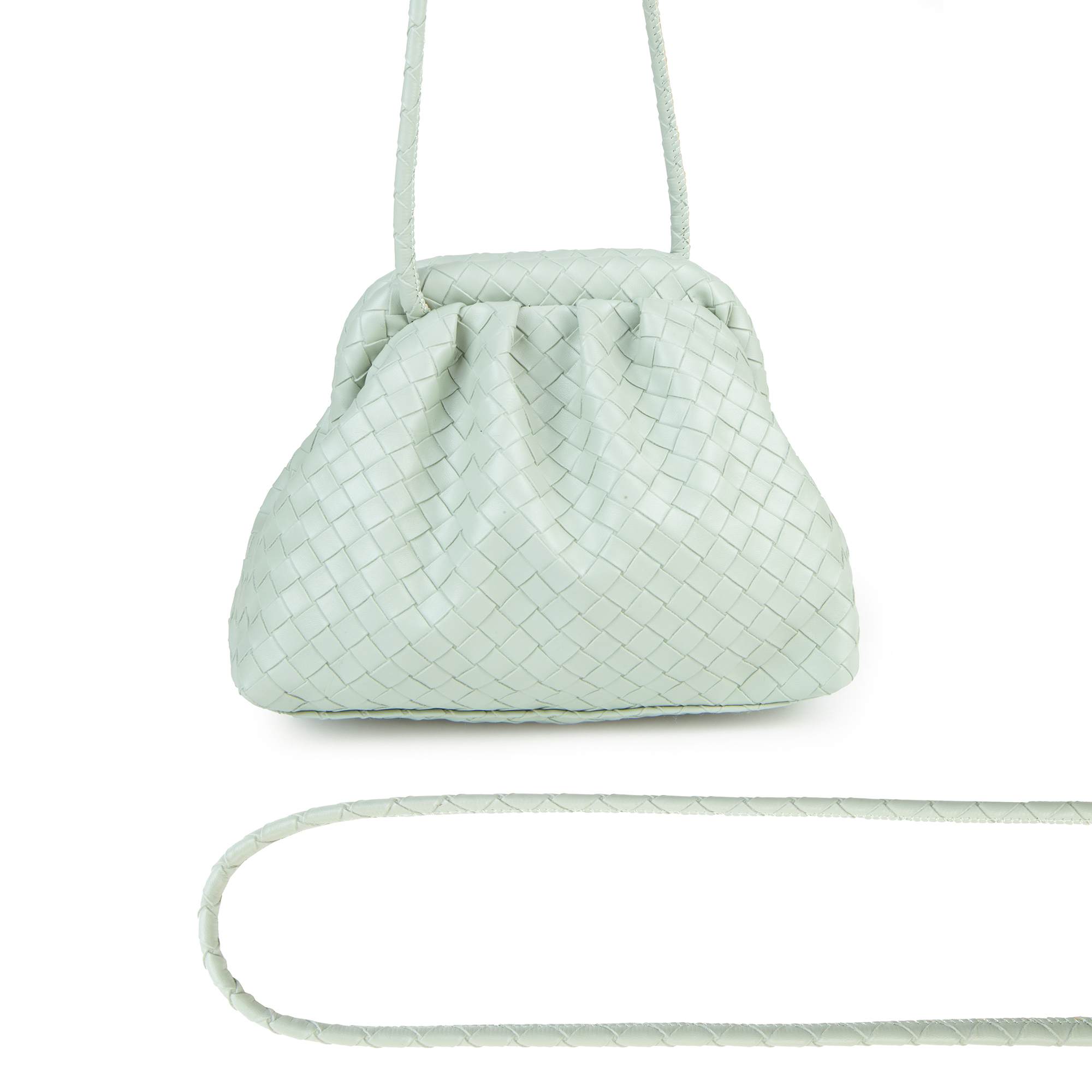Самая актуальная модель этого сезона, в очень интересных оттенках фирмы Pola. Сумка-клатч под плетение выполнена из экокожи. Сумку удобно носить и как кросс-боди. Модель из-за своеобразной формы получила ласковое название «пельмешка» .Эти сумки потрясающе удобные и комфортные. Внутри один открытый карман. Максимальная высота ручки 53 см. Эта сумка подойдет под любой образ.