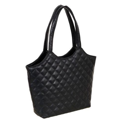 Стеганая женская сумка Pola выполнена из экокожи. Данная модель продолжает удерживать лидирующие позиции среди трендов!  Основное отделение закрывается на молнию. Внутри два кармана на молнии и открытый кармашек. Сумка отлично держит форму. Сумку можно переносить с помощью двух ручек, высота которых составляет 20 см, а также на плече с помощью съёмного регулируемого ремня, длина которого составляет 113 см. Цвет фурнитуры-золото.
