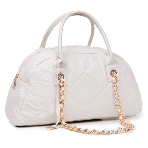 Стильная сумка фирмы Pola выполнена под плетение из экокожи. Основное отделение закрывается на молнию. Внутри есть карман на молнии и открытый карман. Сумку можно переносить с помощью ручки высота 20см. Данная модель очень элегантна и великолепно подходит для ежедневного использования. Цвет фурнитуры-золото.