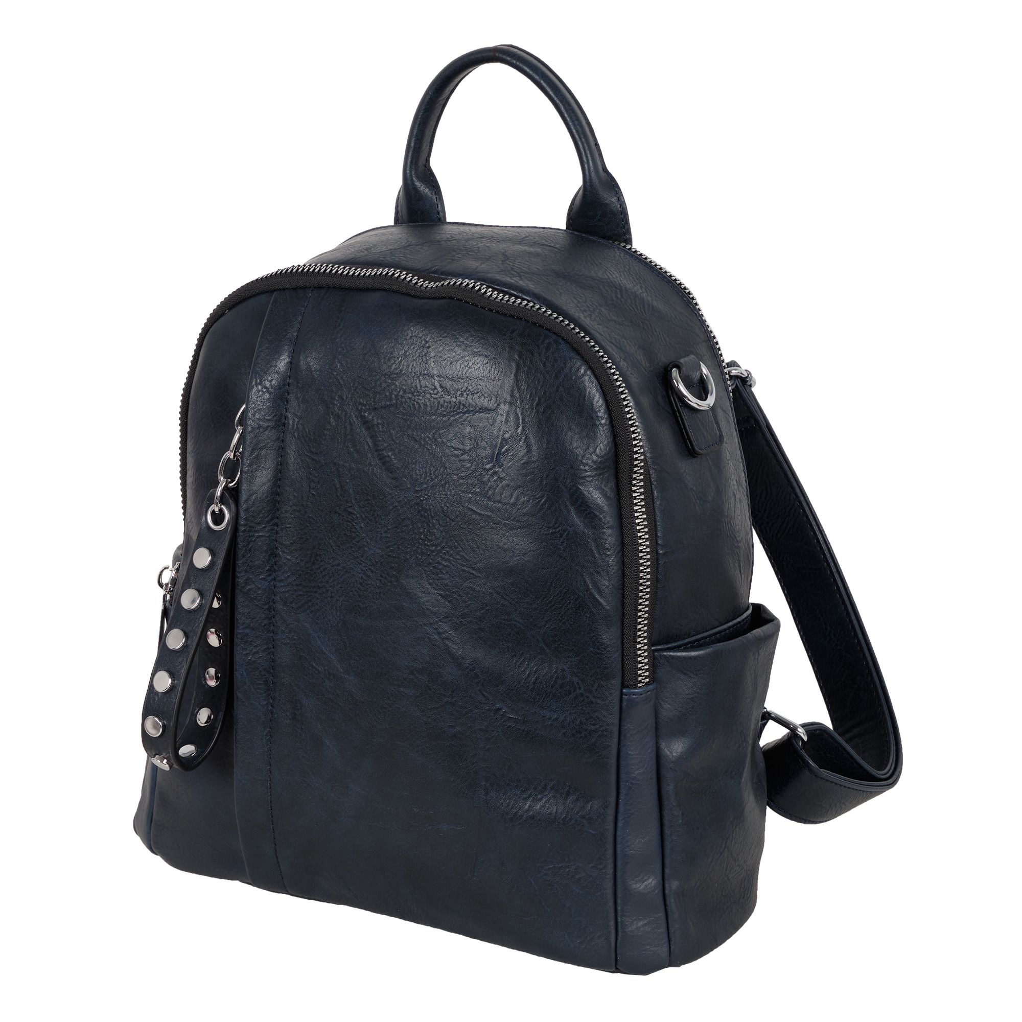 Женская сумка-рюкзак фирмы Pola выполнен из экокожи. Отлично подойдет для повседневного использования. У сумки- рюкзака два независимых отделения застегиваются на металлическую молнию. Центральный отсек для персональных вещей в ней также можно разместить документы формата А4, есть маленький карман на молнии для небольших предметов. Большой передний карман внутри с небольшим открытым карманом для мелочей. Спереди есть вертикальный  карман на молнии. Сзади также есть небольшой потайной кармашек. Два боковых кармана. У сумки-рюкзака есть съёмный ремень максимальная длина 83 см за счет него рюкзак можно носить на плече как сумку. Максимальная длина лямок рюкзака 90см. Длина ручки 9 см. Цвет фурнитуры серебро.