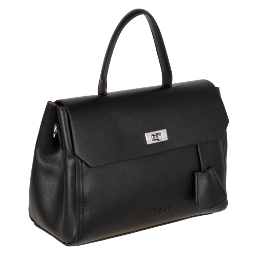 Модная сумка Pola выполнена из экокожи и украшена платком. Сумка прекрасно подойдёт женщинам, предпочитающим деловой, классический стиль. Основное отделение закрывается клапаном на магнитной кнопке. Внутри небольшой открытый кармашек. Сумку можно носить как в руках с помощью двух ручек, высота которых составляет 12 см, так и на плече с помощью съёмного регулируемого ремня длина которого- 115см. Цвет фурнитуры-золотой.