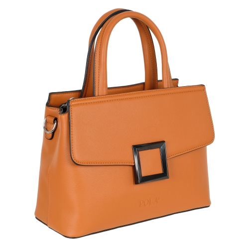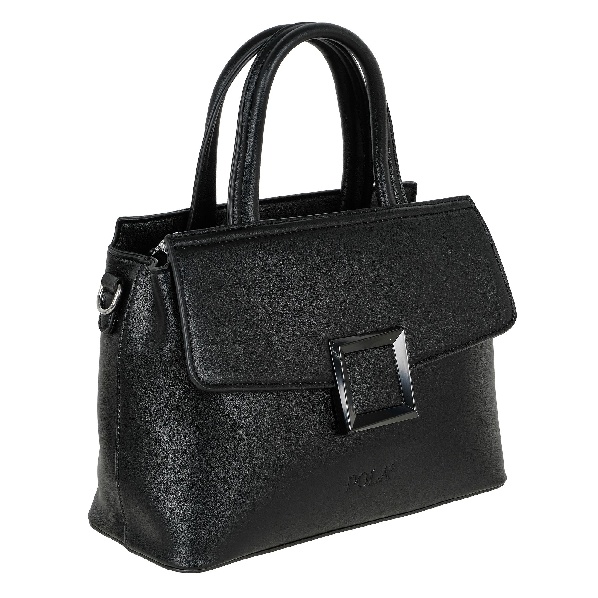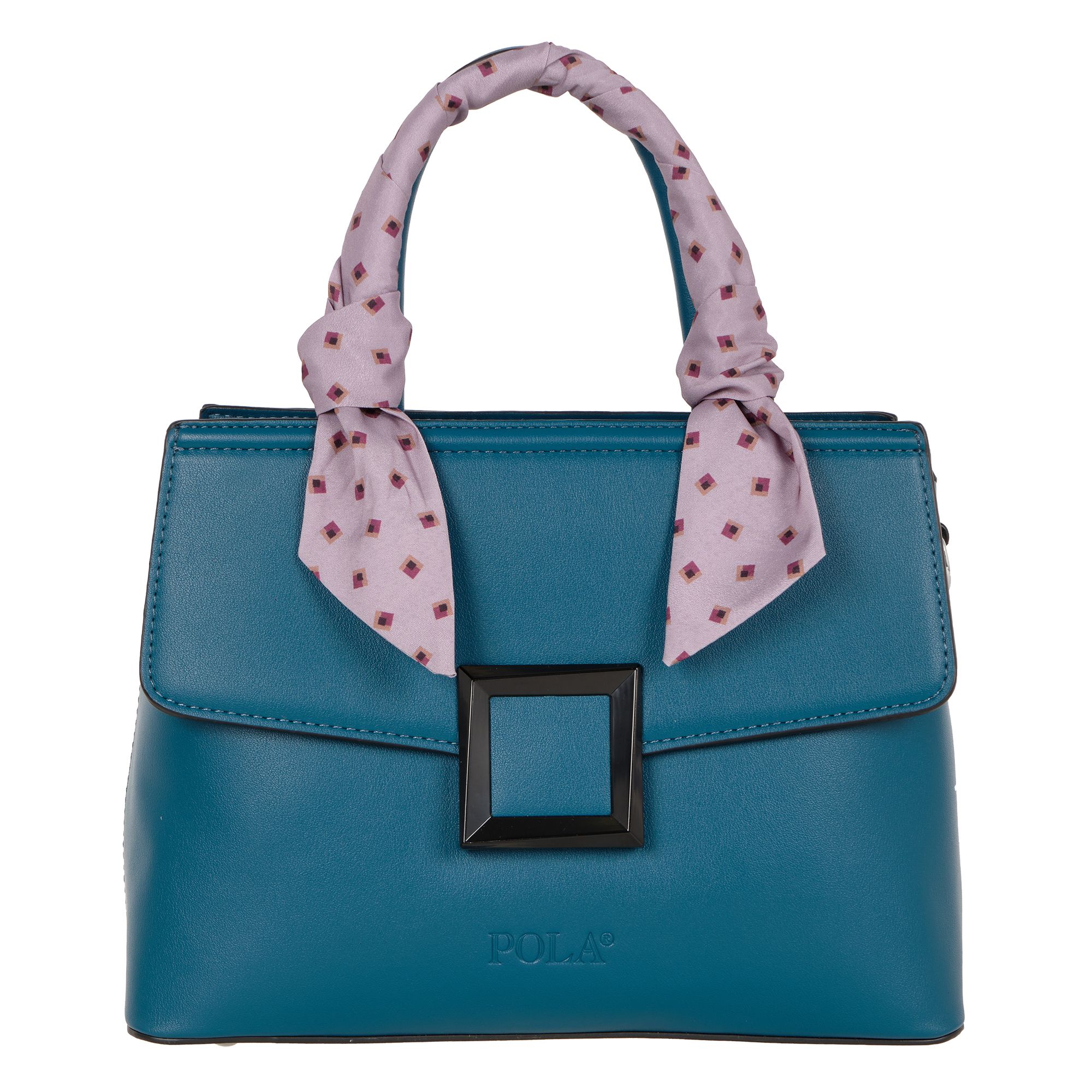 Элегантная сумка Pola выполнена из экокожи, закрывается на металлическую молнию. Украшена платком и декоративным клапаном на кнопке. Внутри основного отделения расположены два кармана на молнии и два открытых кармашка. Сзади сумки присутствует маленький карман на молнии. У сумки есть ручка для переноски, высота которой 13 см и два ремешка, один тонкий съёмный 112 см и 87 см второй ремешок шириной 3,5 см. Цвет фурнитуры-серебро.