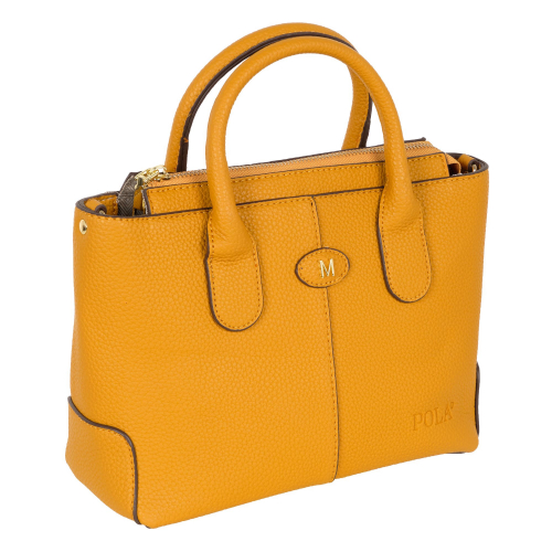 Стильная женская сумка фирмы Pola выполнена из экокожи и украшена брелоком. Основное отделение закрывается на металлическую молнию. Внутри сумочки есть маленький карман на молнии и два открытых. Сумка прекрасно подойдёт для повседневной носки. У сумки есть ручки для переноски, высота которых составляет 10 см их можно украсить платком и два съёмных, ремешка, один из экокожи тонкий регулируемый длина которого- 121 см и 87 см второй ремешок из текстиля. Цвет фурнитуры-золото.