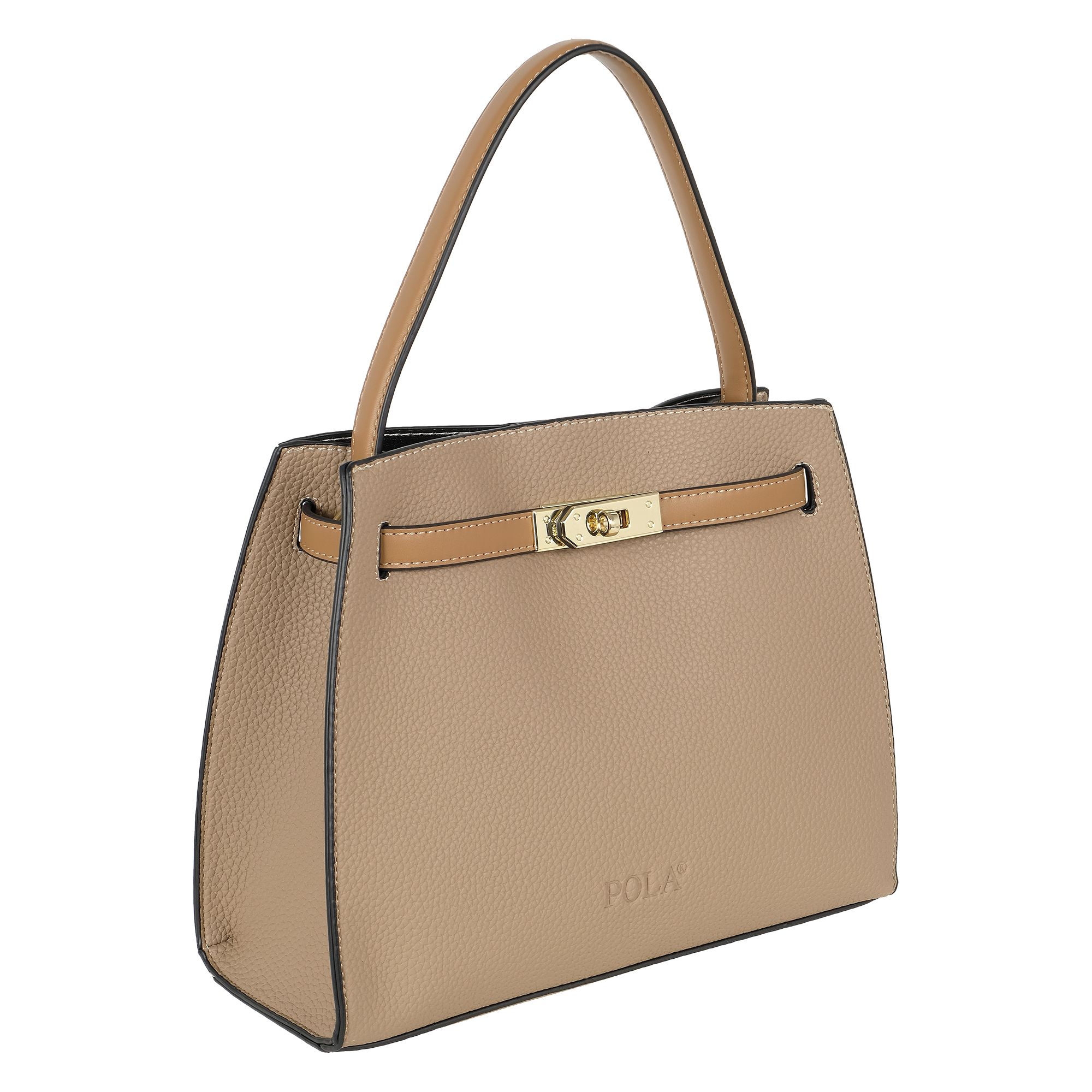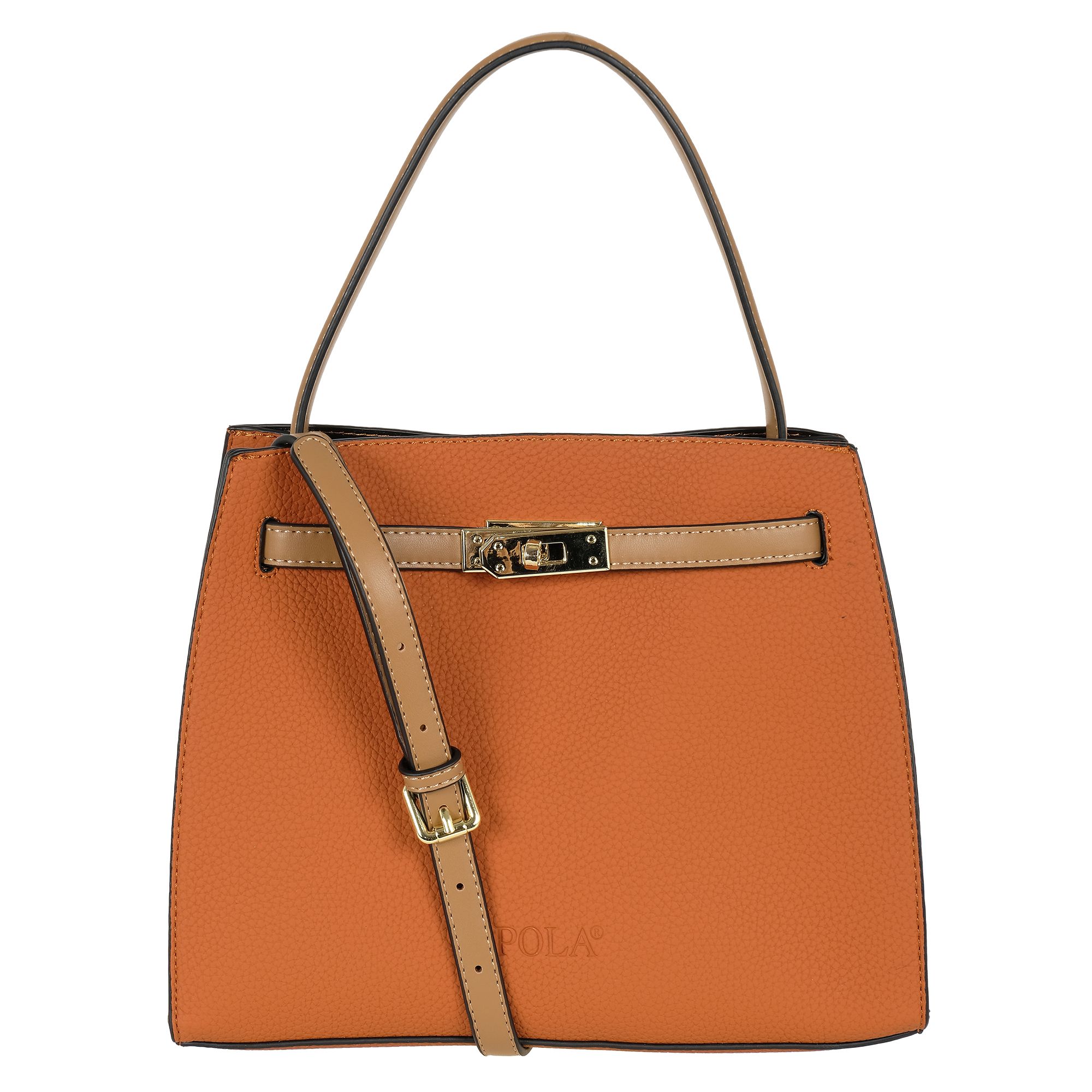 Стильная женская сумка фирмы Pola выполнена из экокожи и украшена платком. Основное отделение закрывается на металлический поворотный замок. Особенность модели состоит из сумки и кросс-боди, можно носить как самостоятельную сумку. Закрывается на металлическую молнию. Внутри сумочки кросс-боди маленький карман на молнии. Высота ручки для переноски, высота которой составляет 14 см и один съёмный ремешок длина которого 115. Цвет фурнитуры-золото.