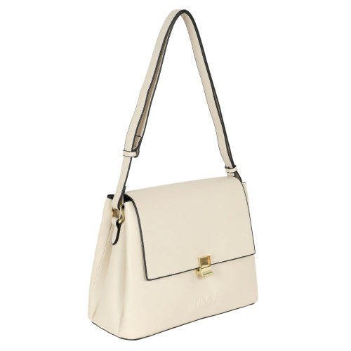 Стильная женская сумка фирмы Pola выполнена из экокожи и украшена платком. Основное отделение закрывается на клапан с помощью металлического замка-защелки и металлическую молнию. Внутри сумки есть маленький карман на молнии и один открытый. Сумка прекрасно подойдёт для повседневной носки. У сумки есть регулируемая ручка для переноски, высота которой составляет 45 см их можно украсить платком. Есть тонкий регулируемый ремешок длина которого- 121 см. Цвет фурнитуры-золото.