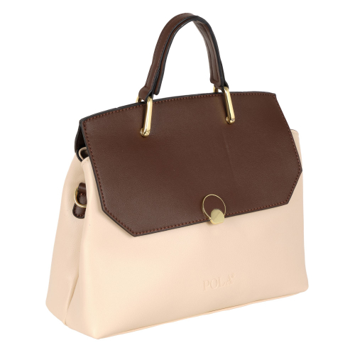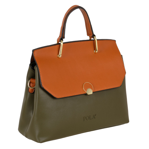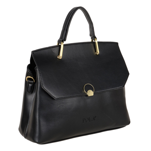 Элегантная сумка Pola выполнена из экокожи, закрывается на металлическую молнию и на клапан с помощью металлического замка-защелки.  Внутри основного отделения расположены два кармана на молнии и два открытых кармашка. Сзади сумки присутствует маленький карман на молнии. У сумки есть ручка для переноски, высота которой 9 см и два съемных ремешка, один тонкий 117 см и 87 см второй ремешок из текстиля  шириной 4 см.  Сумка-аксессуар на длинном ремешке, которую можно носить или на плече, или (накрест) «пересекая тело». Данная особенность делает сумку просто незаменимой, так как руки при этом остаются абсолютно свободными. Цвет фурнитуры-золото.