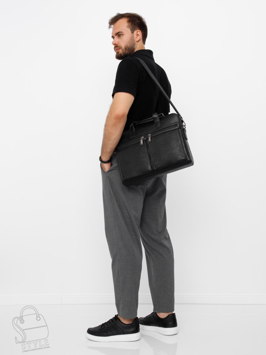 Мужской портфель выполнен из экокожи. Дополнен серебристой темной фурнитурой. Данная модель закрывается на молнии. Каркас полужесткий. Носится в руке за встроенные ручки или на плече. В комплекте имеется съемный ремень.