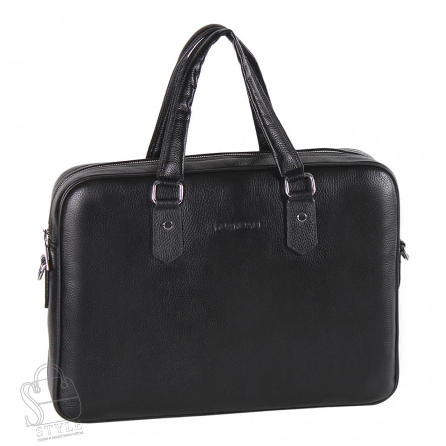 Мужской портфель выполнен из натуральной кожи. Дополнен серебристой фурнитурой. Данная модель закрывается на молнию. Каркас полужесткий. Носится в руке за встроенные ручки или на плече. В комплекте имеется съемный ремень.