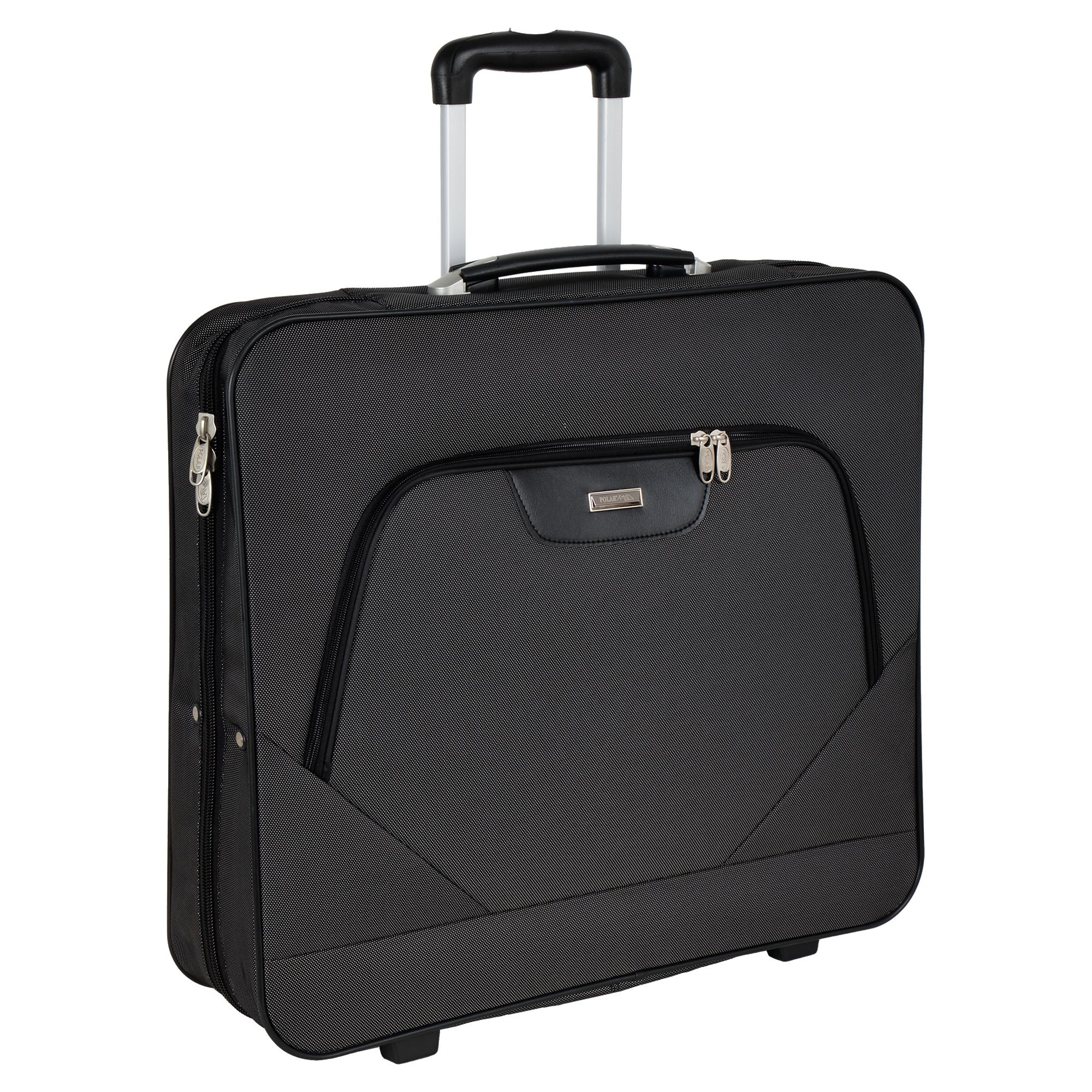 Портплед фирмы Polar на двух колёсах выполнен из полиэстера и предназначен для перевозки деловых костюмов в командировке. Портплед состоит из основного отделения в форме чехла , внутри основного отделения расположен фиксатор багажа. Снаружи, на передней части портпледа, имеется объёмный накладной карман на молнии. У портпледа есть две ручки (ручка для переноски и выдвижная ручка для перевозки, максимальная высота которой составляет 48см, а также крючок для хранения портпледа в шкафу).