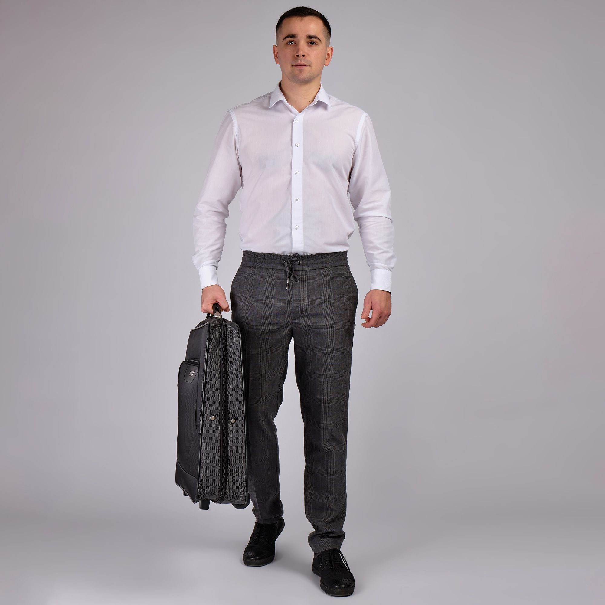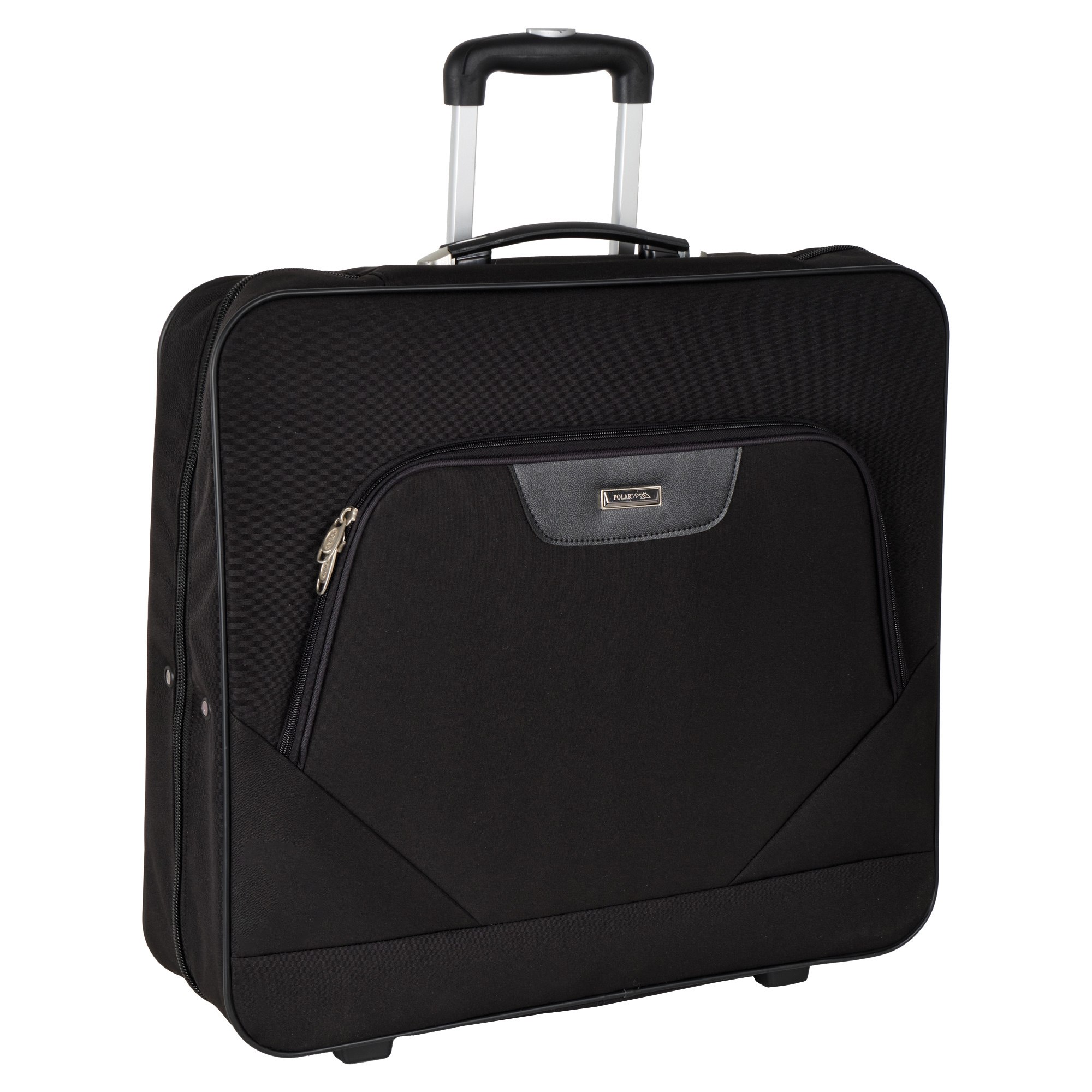 Портплед фирмы Polar на двух колёсах выполнен из полиэстера и предназначен для перевозки деловых костюмов в командировке. Портплед состоит из основного отделения в форме чехла , внутри основного отделения расположен фиксатор багажа. Снаружи, на передней части портпледа, имеется объёмный накладной карман на молнии. У портпледа есть две ручки (ручка для переноски и выдвижная ручка для перевозки, максимальная высота которой составляет 48см, а также крючок для хранения портпледа в шкафу).