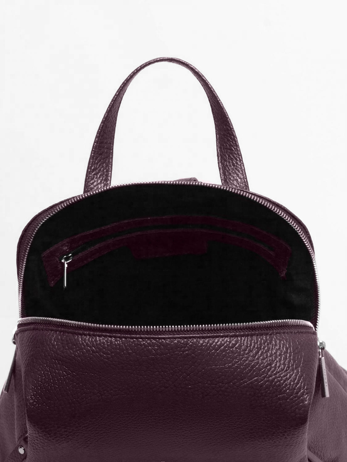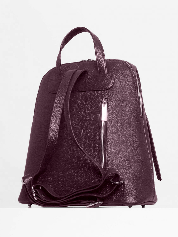 Стильный рюкзак из мягкой кожи, снаружи оснащён тремя вместительными вертикальными карманами на молнии.