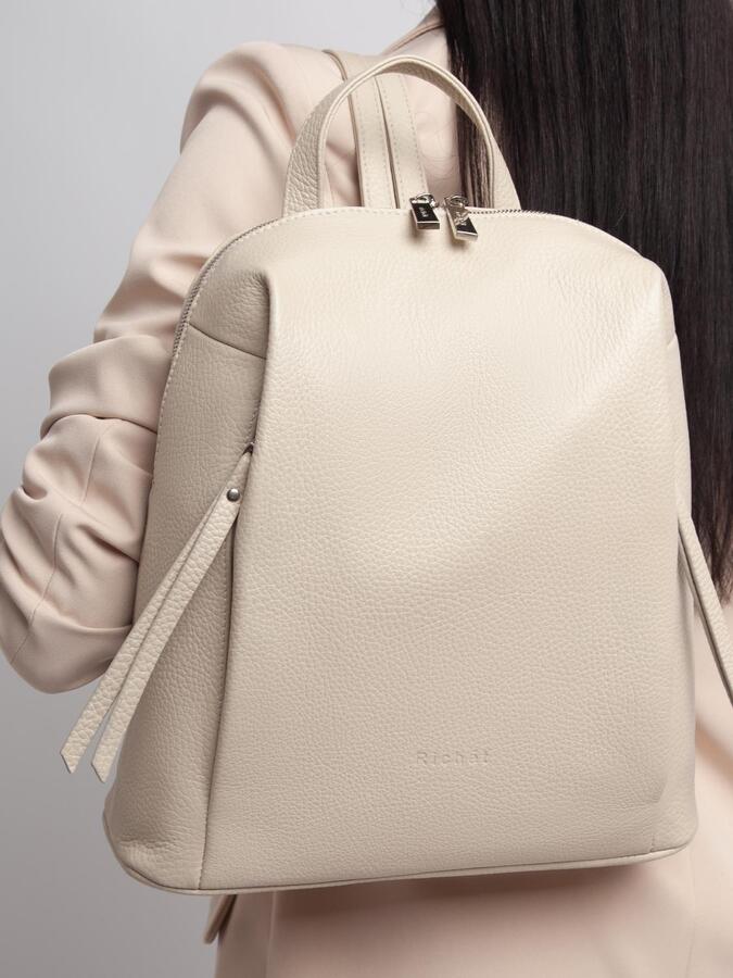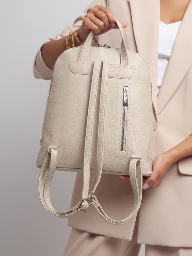 Стильный рюкзак из мягкой кожи, снаружи оснащён тремя вместительными вертикальными карманами на молнии.