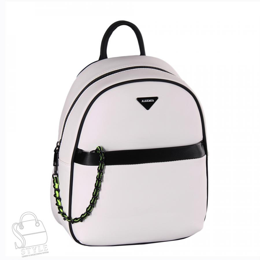 Рюкзак, выполнена из матовой экокожи. Декорирован цепочкой. Дополнен серебристой фурнитурой. Данная модель закрывается на молнию. Каркас полужесткий. Носится в руке или на плече.