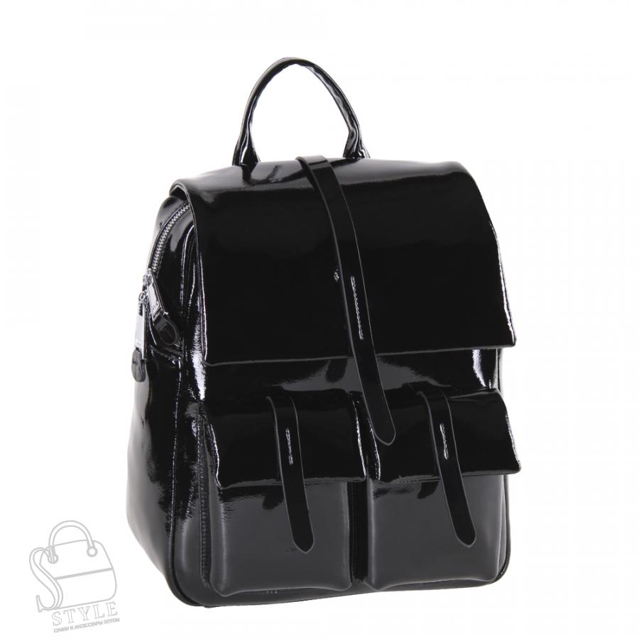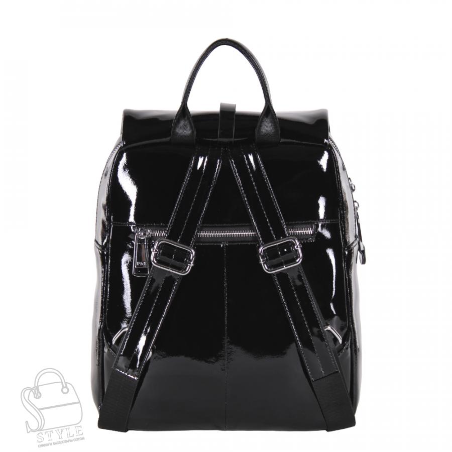 Классическая модель рюкзака, выполнен из натуральной лаковой кожи.  Дополнен серебристой фурнитурой. Данная модель закрывается на клапан, носится на плече или в руке. Встроенные ремни регулируются по длине. Так же имеется ручка. Каркас полужесткий.