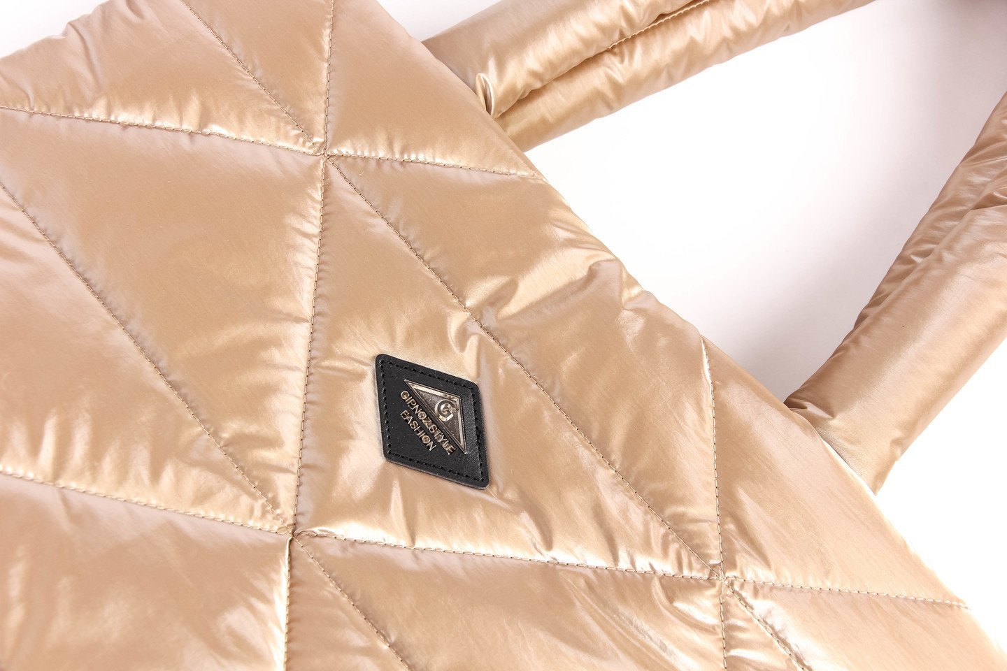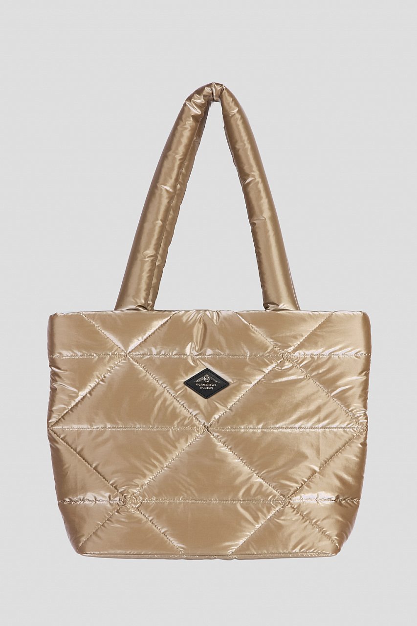 Стеганая сумка-шоппер прекрасно дополнит ваш образ. Выполнена из водонепроницаемого материала и имеет оптимальный вместительный размер. Застежка на кнопку-магнит, дно сумки жесткое. Внутри сумки – 2 кармана, накладной карман с двумя отсеками для телефона и различной мелочи и карман на молнии. золотистый