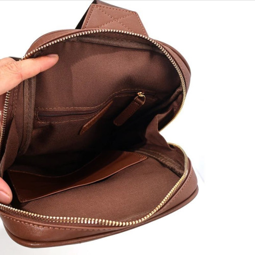 Внутри: одно отделение с двумя карманами на молнии и без для телефона, документов и различных мелочей. На внешней передней стенке расположен карман на молнии. Рюкзак закрывается на молнию. В комплекте удобная широкая регулируемая лямка. Модель держит форму. Эргономика рюкзака позволяет комфортно носить его на одном плече или через плечо.