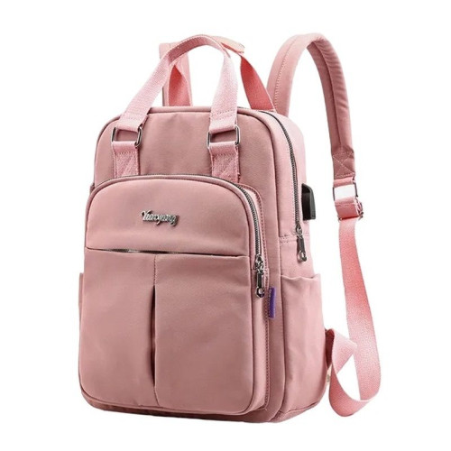 Внутри: одно большое отделение, по бокам которого расположены карманы на молнии и без для телефона, документов и различных мелочей. С внешней стороны на передней стенке два кармана на молнии. Снаружи по бокам расположены открытые карманы. В комплекте USB провод. Лямки регулируются по высоте.