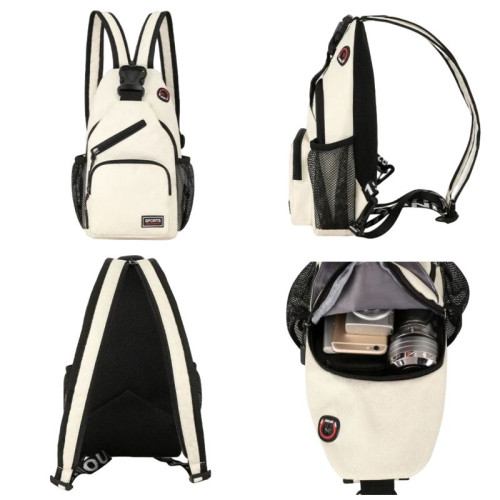 Внутри: одно отделение на молнии. Снаружи расположены карманы на молнии и без для всего самого необходимого. Лямки регулируются по высоте и их можно застегнуть на молнию в одну лямку.