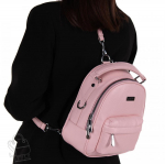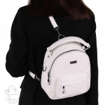 Рюкзак-трансформер, из экокожи.  Дополнен серебристой фурнитурой. Данная модель закрывается на молнию. Каркас полужесткий. Носится как сумка или как рюкзак. Ремни съемные.