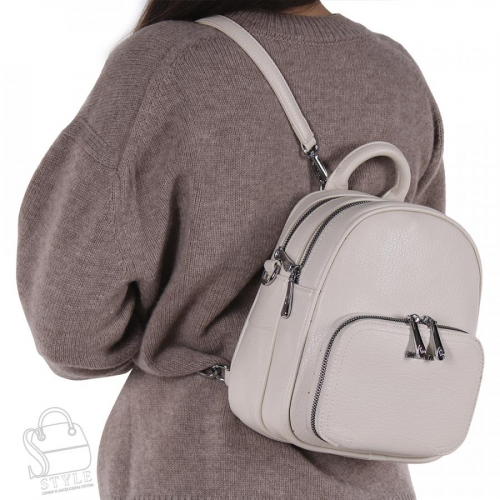 Рюкзак-трансформер, выполнен из экокожи.  Дополнен серебристой фурнитурой. Данная модель закрывается на молнии. Каркас полужесткий. Носится как рюкзак или как сумка. В комплекте имеются съемные ремни.