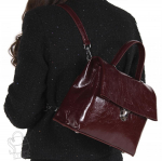 Рюкзак-трансформер, выполнена из экокожи.  Дополнена серебристой фурнитурой. Данная модель закрывается на молнии. Каркас полужесткий. Носится как сумка или как рюкзак. Ремни съемные, так же есть встроенная ручка.